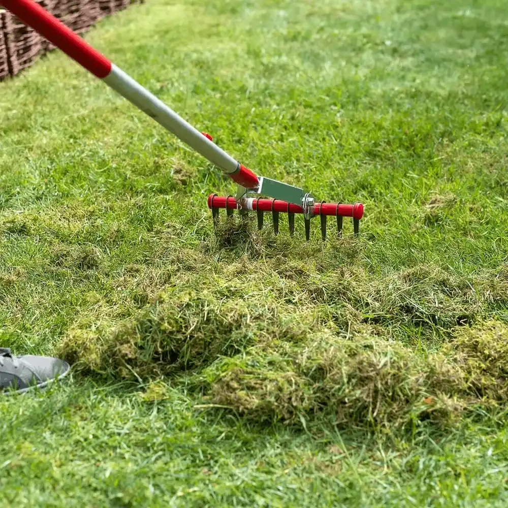 ► Wahadłowe ostrza tnące – automatycznie dostosowują kąt pracy do ruchu, precyzyjnie wyczesując mech i resztki roślinne, co natychmiast poprawia wchłanianie wody oraz nawozów.